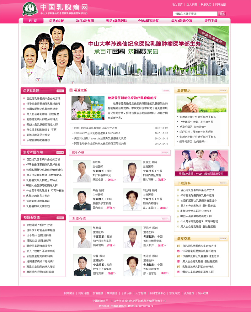 項目名稱:中山大學孫逸仙紀念醫院乳腺腫瘤科網站建設簽定日期:2010年10月30日網站首頁設計稿:(縮略圖)...