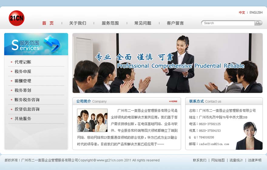 ??? 廣州市二一熹恩企業(yè)管理服務(wù)有限公司是一家為中國(guó)和外國(guó)客戶提供各種財(cái)稅服務(wù)的專業(yè)咨詢公司。我們的團(tuán)隊(duì)均由在財(cái)務(wù)、稅務(wù)、企業(yè)管理咨詢等領(lǐng)域從業(yè)多年并擁有豐富經(jīng)驗(yàn)的資深專業(yè)人士組成。