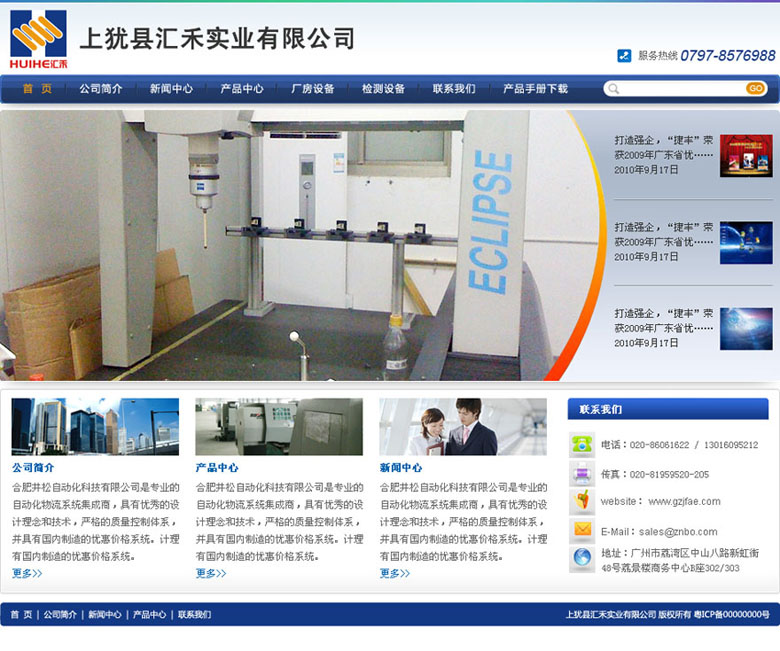項目名稱:江西上猶縣匯禾實業有限公司網站建設簽定日期:2011-2-13公司簡介:上猶縣匯禾實業有限公司原為中山市精瑞模具制品有限公司,是一家專業生產精密冷沖模架、獨立導柱、導套、沖針、保持架、數控沖模具等冷沖模配件的企業。公司成立于1998年,是中國模具工業...
