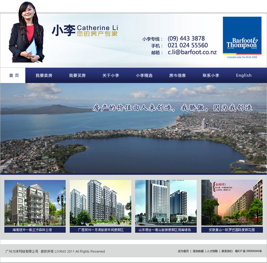 小李現在就職于奧克蘭最大的房地產公司Barfoot&Thompsn,是一名非常優秀的地產中介。五年洋人公司營銷經理的經驗配合在本科和碩士所學的知識讓我在房屋交易過程中可以幫您準確定位市場,制定有效的營銷策略。多年積累的專業談判技巧更可以幫您在房屋買賣過程中爭取到最大利益。