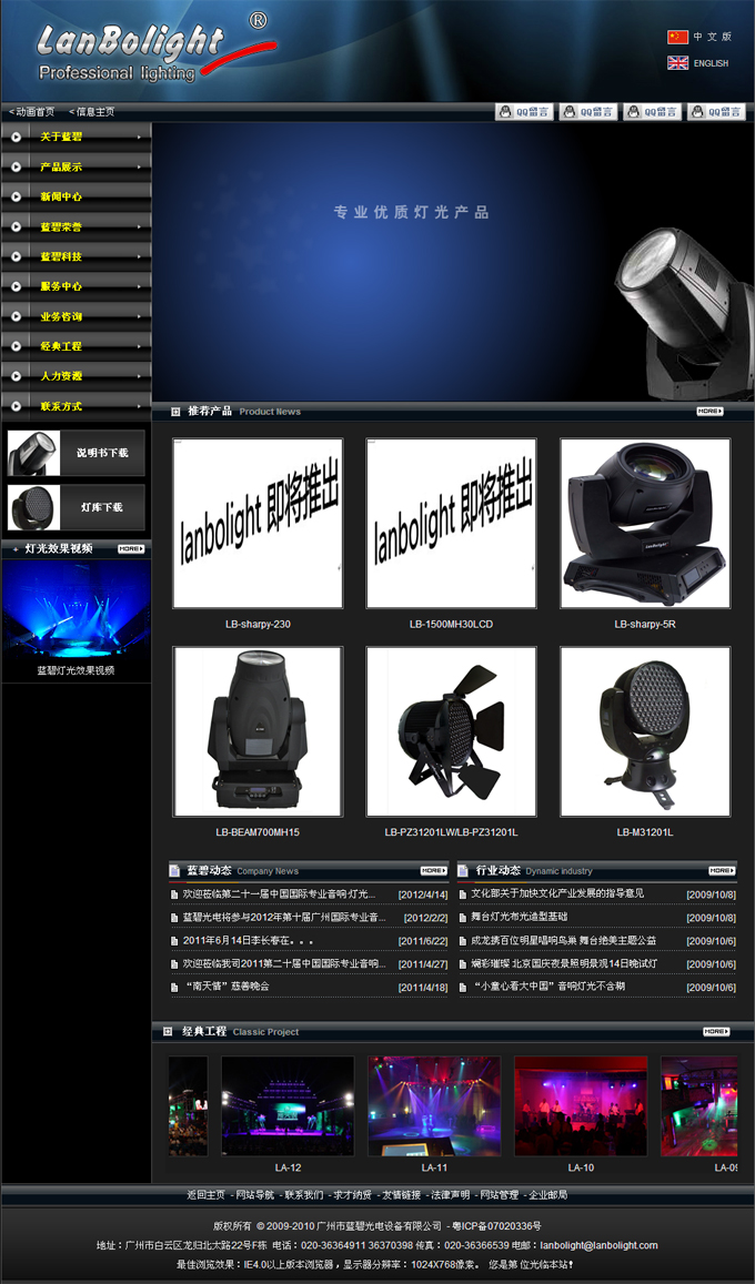 廣州市藍碧光電設備有限公司成立于2004年,其前身是廣州亮美燈光,2006年正式注冊為廣州市藍碧光電設備有限公司。本公司是一家集影視舞臺燈光設備研發、生產、銷售、工程設計及安裝為一體的高科技企業。多年來公司秉承以人為本的宗旨,堅持走自主研發,獨立創新的道路,取得了飛速的發展,成功推出了具有自主知識產權和品牌的LANBOLIGHT系列舞臺燈光產品:電腦搖頭燈,掃描燈,激光燈,LED燈等。穩定性和可靠性高的產品是我們的生存之本,給客戶提供的真誠、周到服務是我們的發展之道。“安全、環保、節能”的藍碧光電產品以其卓越的品質,優質的服務,以及優越的性價比,使我們贏得了廣闊的市O空間和國內外客戶的一致好評!