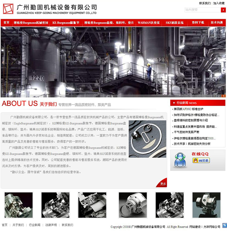 ??? ?廣州勤固機械設備有限公司,是一家專營世界一流品質密封類機械產品的公司,主營產品有德國博格曼Burgmann機械密封(EagleBurgmann機械密封),KE博格曼KE-Burgmann膨脹節,德國博格曼Burgmann盤根、填料環、墊片,瑞典SKF潤滑系統等國際知名品牌。產品廣泛應用于化工、能源、造紙、食品等行業,并為國內外多家知名企業、制造商配套。公司成立以來,一直致力于為客戶提供高質量的產品及完善的售前與售后服務,獲得客戶的一致好評。