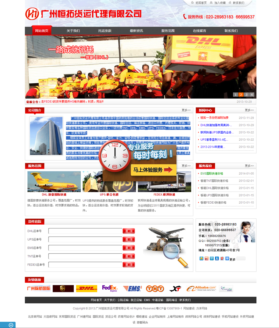 廣州恒拓貨運代理有限公司是獲得中國政府批準的合法經營國際快遞、國際空運業務的專業化國際快遞服務公司。我司專業代理國際快遞、國際空運、海運拼箱、進出口代理、代理報關、核銷、快件服務等各種國際貨運進出口業務,一級代理TNT、DHL、EMS、UPS、FEDEX、日本佐川急便、中東、歐美等專線!