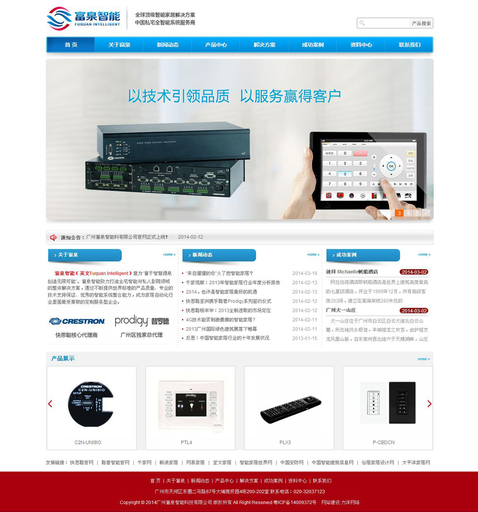 項目名稱:廣州富泉智能科技有限公司 簽定時間:2014-1-17 項目網址:http://www.zgchousha.com 項目簡介:富泉智能(英文FuquanIntelligent)意為“富于智慧源泉創造無限可能”。富泉智能致力打造全宅智能與私人...