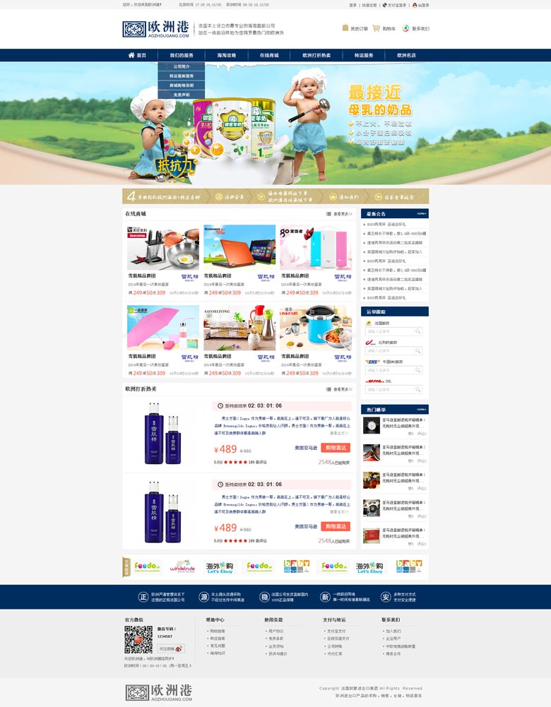 近日,力洋網(wǎng)絡(luò)成功簽約歐洲港商城,為其提供專業(yè)的網(wǎng)站建設(shè)服務(wù)。歐洲港商城專注于歐洲進出口產(chǎn)品的采購、銷售、倉儲、物流服務(wù)。關(guān)注歐洲港,與歐洲潮流同步!歐洲港商城目前已經(jīng)進入建設(shè)收尾階段,官網(wǎng)即將上線。小編在此提前放出官網(wǎng)設(shè)計圖供大家觀賞參考。