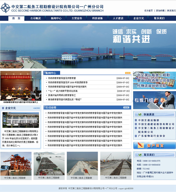 項目名稱:中交第二航務工程勘察設計有限公司廣州分公司網站建設簽定日期:2009年8月24日網站首頁效果...