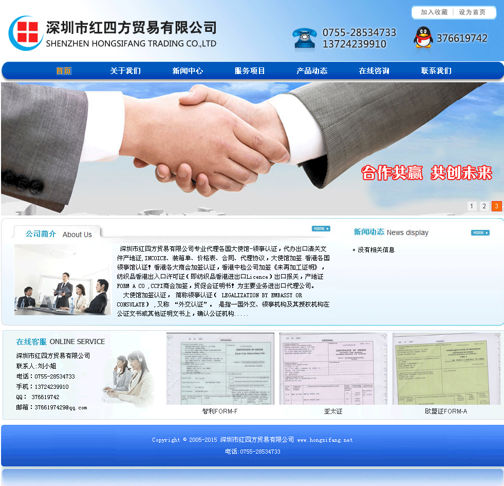 與深圳市紅四方貿易有限公司簽訂網站建設合同