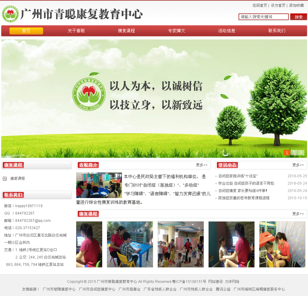 項目名稱:廣州市青聰康復教育中心網站建設 簽定時間:2015-9-21 項目網址:http://www.qckangfu.com 網站簡介: