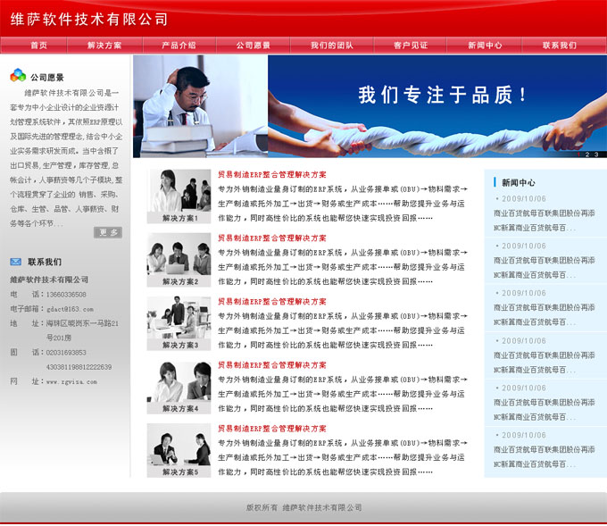 項目名稱:廣州維薩軟件技術有限公司網站制作簽定日期:2009年10月20日首頁效果圖:...