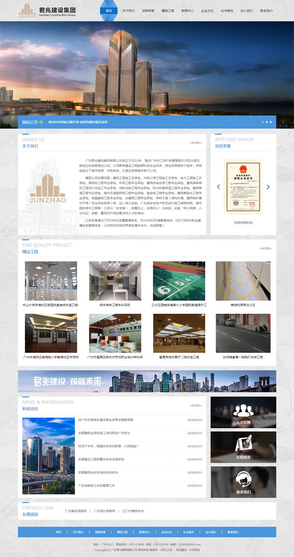 項目名稱:廣東君兆建設集團有限公司網站建設