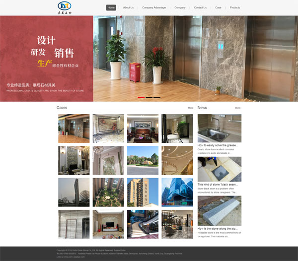 在歷經將近20年的發展以來,該公司積累了豐富的經驗,在市場上獲得了客戶一致的好評,產品廣泛應用于國內外公共場所,酒店、會所、家居裝飾等。公司堅持以“高效、精品、環保、品位”為理念,以“專業締造品質,展現石材其美”為口號。可為客戶提供多元化詳盡的解決方案,從實地量數,效果圖、生產圖設計,車間生產,到現場安裝,后期石材維護保養等一條龍服務。