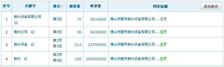網站名稱:佛山市隆韋制冷設備有限公司網址:http://www.lwzlsb.com/關鍵詞:制冷公司、制冷設備、制冷服務類型:收費(2000元/年)關鍵詞在百度排名數據:...