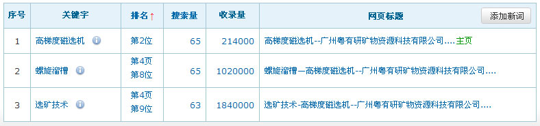 關(guān)鍵詞在百度排名數(shù)據(jù):(暫時(shí)只列出百度的排名數(shù)據(jù),其它搜索引擎的排名效果暫不列出)