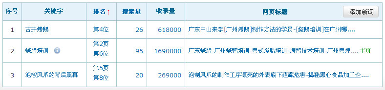 關鍵詞在百度排名數據:(暫時只列出百度的排名數據,其它搜索引擎的排名效果暫不列出)