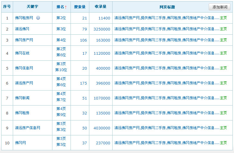 關鍵詞在百度排名數據:(暫時只列出百度的排名數據,其它搜索引擎的排名效果暫不列出)