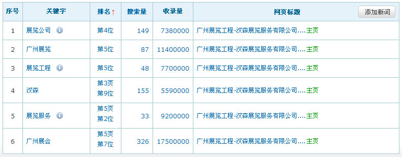 關鍵詞在百度排名數據:(暫時只列出百度的排名數據,其它搜索引擎的排名效果暫不列出)
