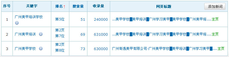 關鍵詞在百度排名數據:(暫時只列出百度的排名數據,其它搜索引擎的排名效果暫不列出)
