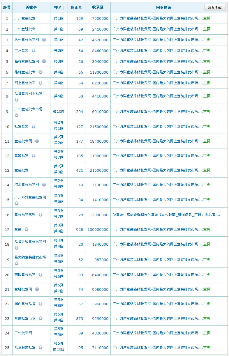關鍵詞在百度排名數據:(暫時只列出百度的排名數據,其它搜索引擎的排名效果暫不列出)