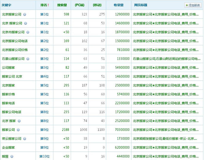 關鍵詞在百度排名數據:(暫時只列出百度的排名"據,其它搜索引擎的排名效果暫不列出)